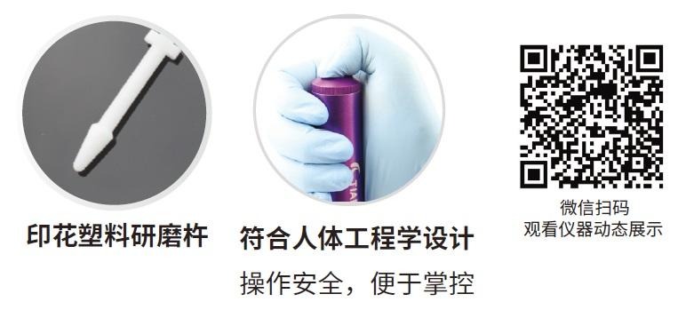 可在1.5 ml离心管内研磨1-100 mg组织样本,代替传统液氮研磨用于该系列研磨器体积小、重量轻、耗电小,广泛适用于大脑、心脏、肺、胃、肝脏、胸腺、肾脏、肠、淋巴结、肌肉等动物组织样品和根、茎、叶、花、果实、种子等植物组织样品的研磨破碎和匀浆。