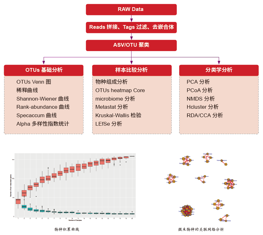 扩增子测序即通过提取环境样品的DNA,选择合适的通用引物扩增16S/18S/ITS 的某一或某几个区域,使用高通量测序及生物信息分析方法检测目的区域的序列变异和丰度,进而对样本中物种分类及丰度、种群结构、系统进化及群落比较等方面信息进行分析的研究方法。根据不同的研究目的和需求,主要分为三类:对 16SrDNA 某个高变区进行测序,用于研究环境微生物中细菌或古菌的群落结构多样性;对18SrDNA 某个高变区进行测序,用于研究环境样本中真核微生物群落结构多样性;对ITS1 或ITS2 进行测序,用于研究环境微生物中真菌群落结构多样性。