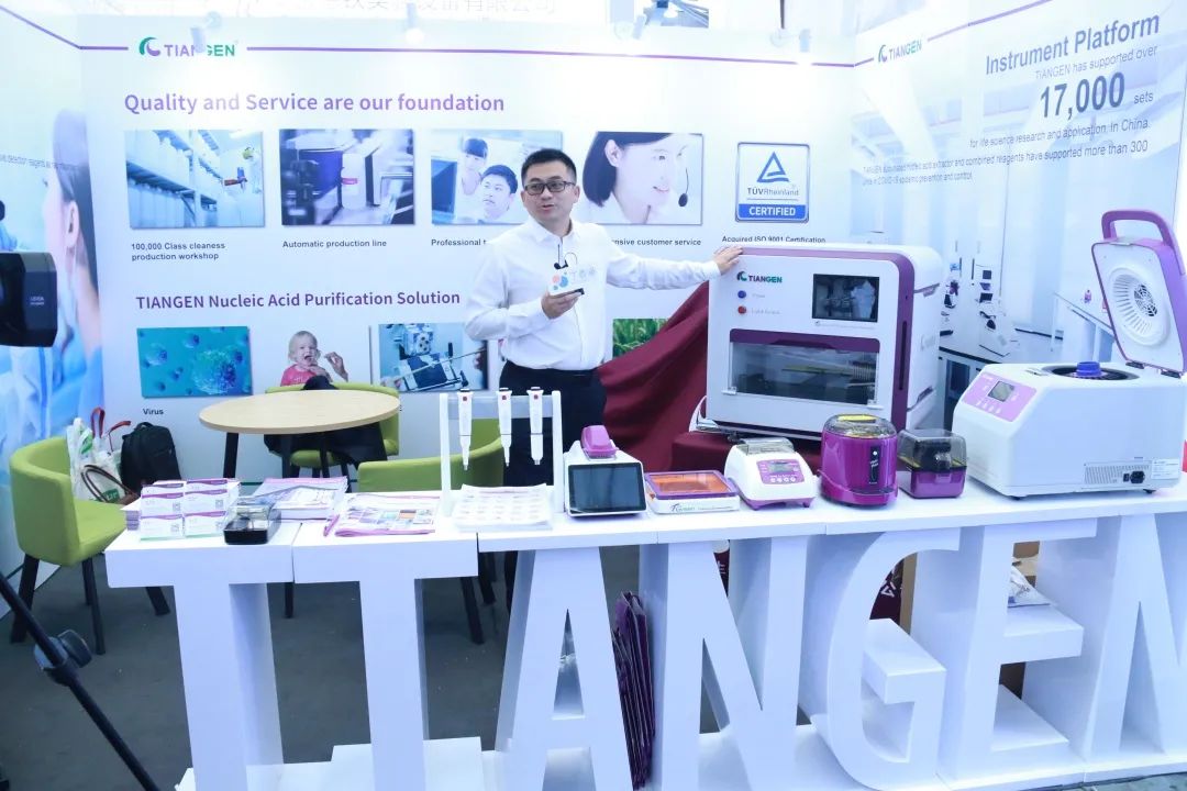 TIANGEN作为专注核酸纯化检测解决方案十五年的企业,携包含试剂、仪器在内的整体核酸检测方案亮相本次大会,向参会者展示了核酸检测过程中从样本前处理、核酸提取到分析检测的全套解决方案。