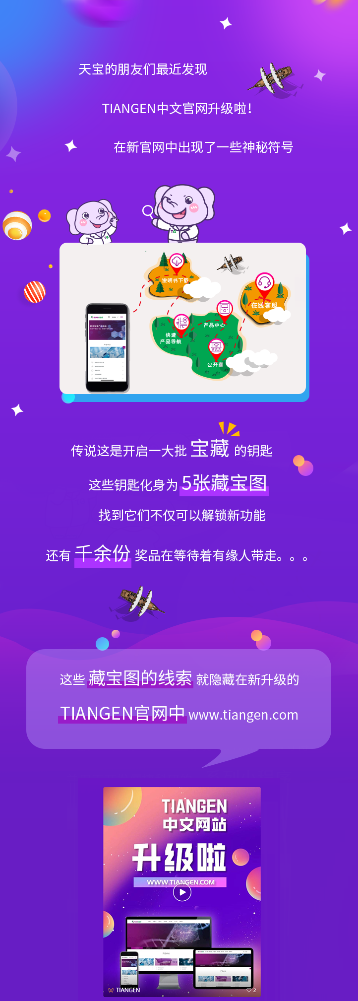 【寻宝嘉年华】TIANGEN官网新升级新体验,千份好礼等你来探寻!