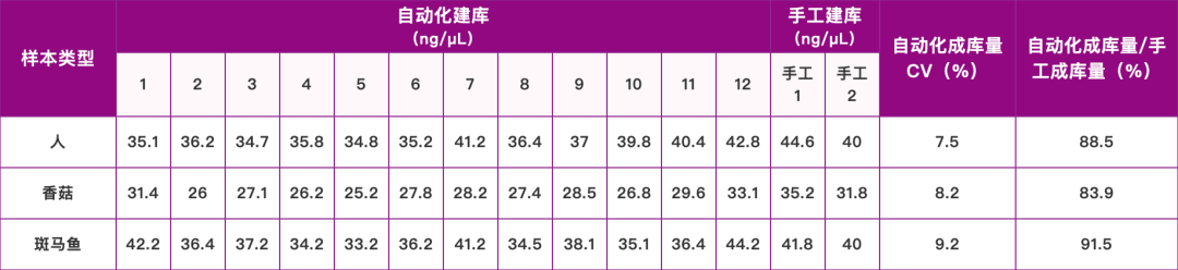 结果显示,TIANGEN的DNA和RNA文库制备试剂可与华大智造MGISP-960平台高效适配,在节约时间以及人工成本的同时带来稳定的建库体验。