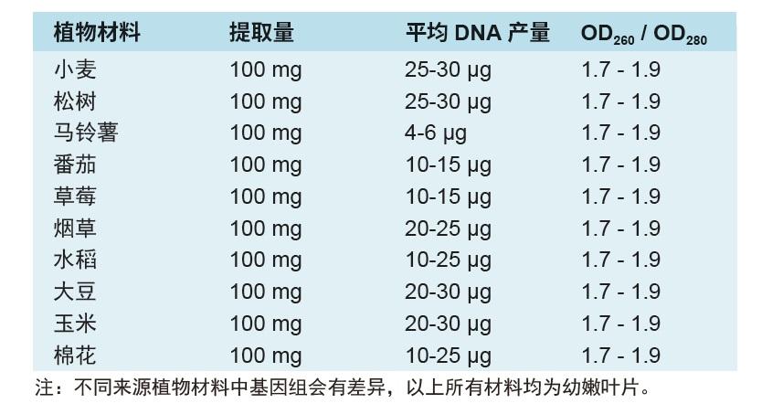 特别适合从多糖、多酚含量高的植物和植物干粉中提取基因组 DNA